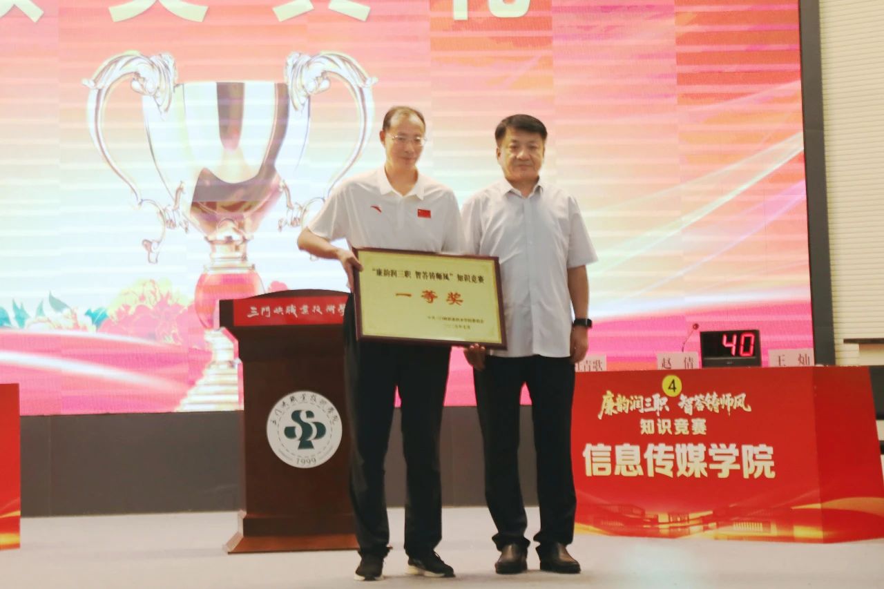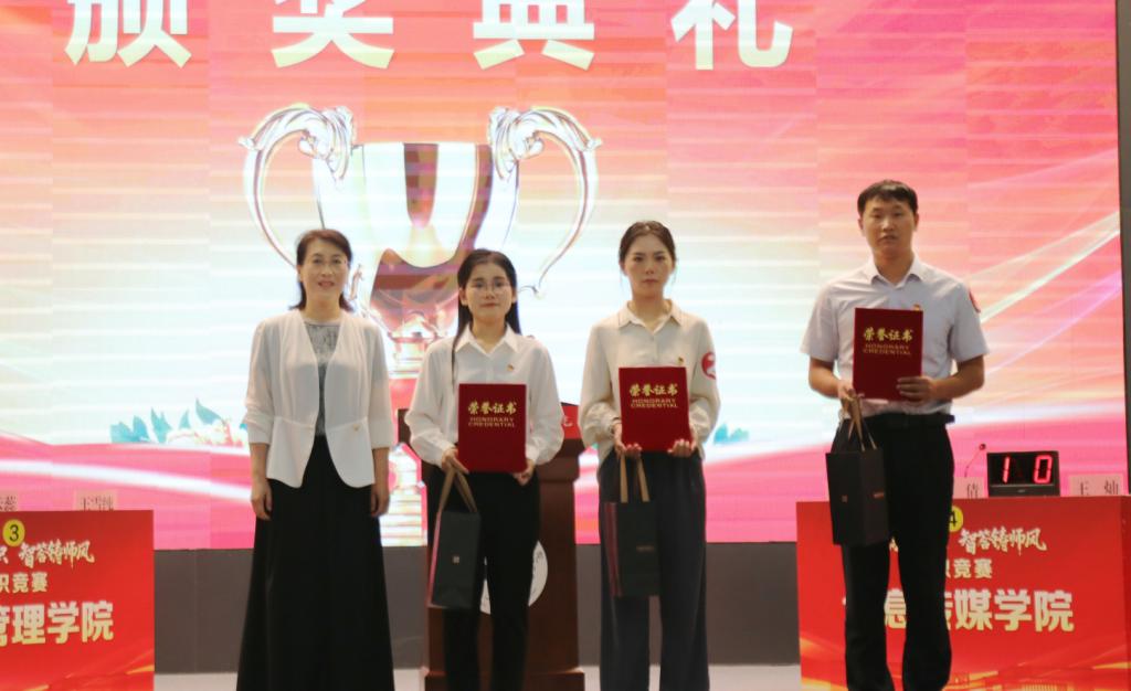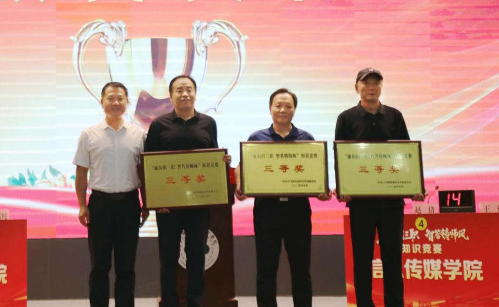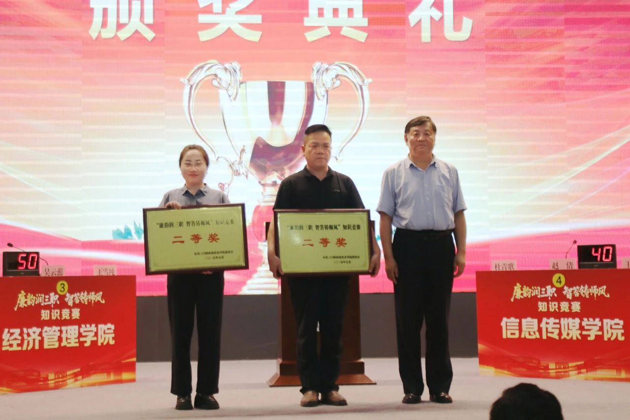 为推动深入贯彻中央八项规定精神学习教育走深走实,持续强化党员干部廉洁自律意识,筑牢拒腐防变思想防线,7月8日,学院成功举办“廉韵润三职·智答铸师风”知识竞赛活动。学院党委书记杨彤、院长颉潭成及院领导班子成员出席活动,全程观摩了比赛。经过激烈的角逐,体育学院荣获一等奖,图书馆、经济管理学院荣获二等奖,信息传媒学院、医护学院、基础部荣获三等奖,教师王峥、吴云蕊、王静静荣获优秀个人。